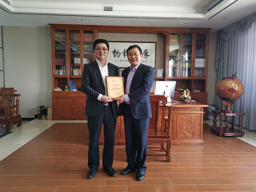 4月13日上午,中国银行股份有限公司肇庆分行行长、党委书记陈卫兵一行4人莅临广东亚太公司,授予:IM(电竞中国)官方网站 2019年“黄金客户”牌匾,颁发给董事长朱增余。