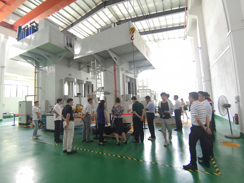 图三:肇庆市政协领导在智能化复合材料汽车零部件成型车间参观