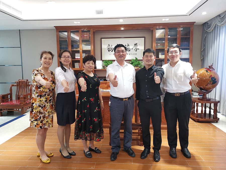 右三:亚太公司董事长朱增余 左三:亚太公司副总经理翟秀凤